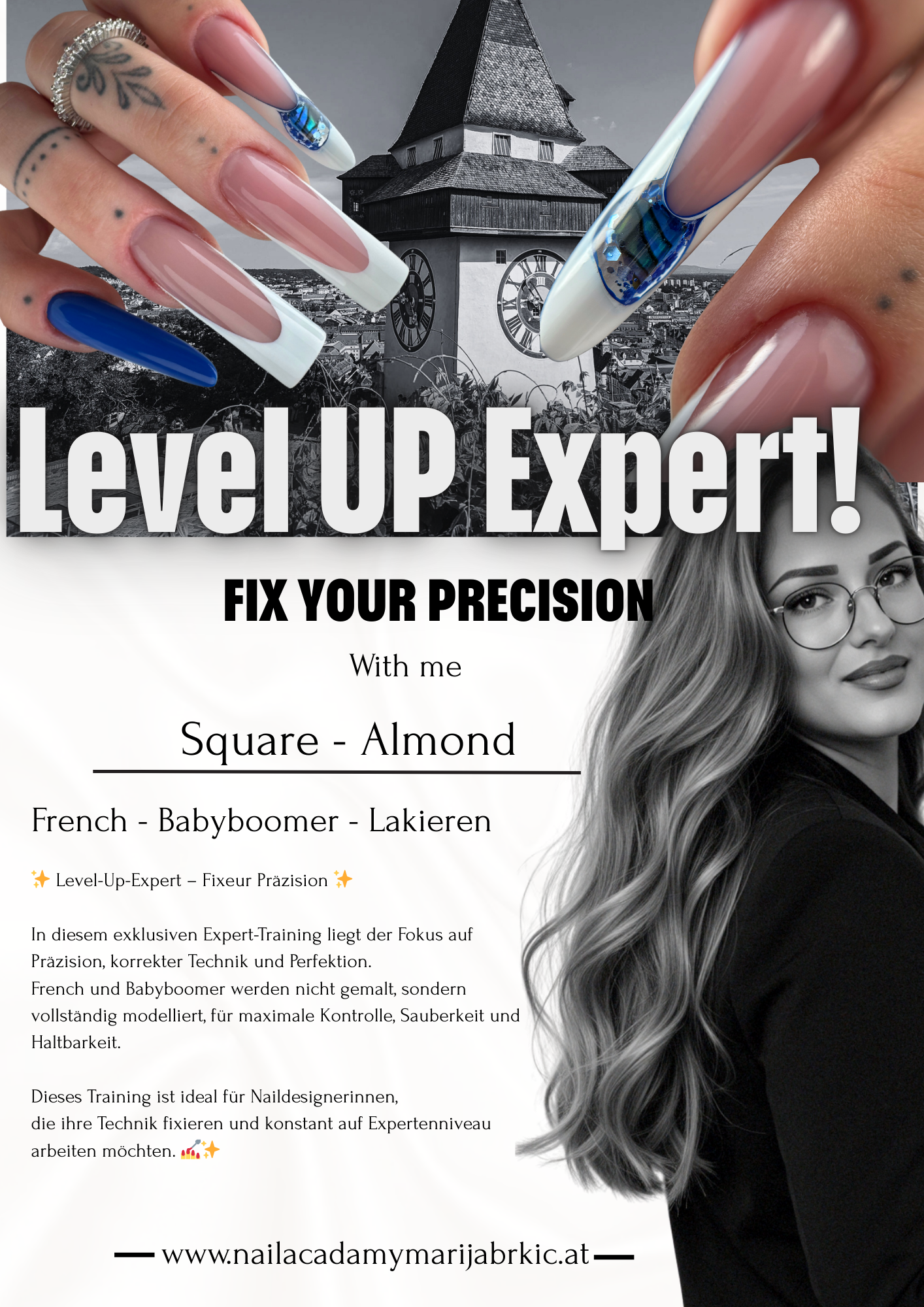 Dieses intensive 1:1 Expert-Training richtet sich an Naildesignerinnen, die ihre Technik auf ein konstant hohes Expertenniveau bringen möchten.